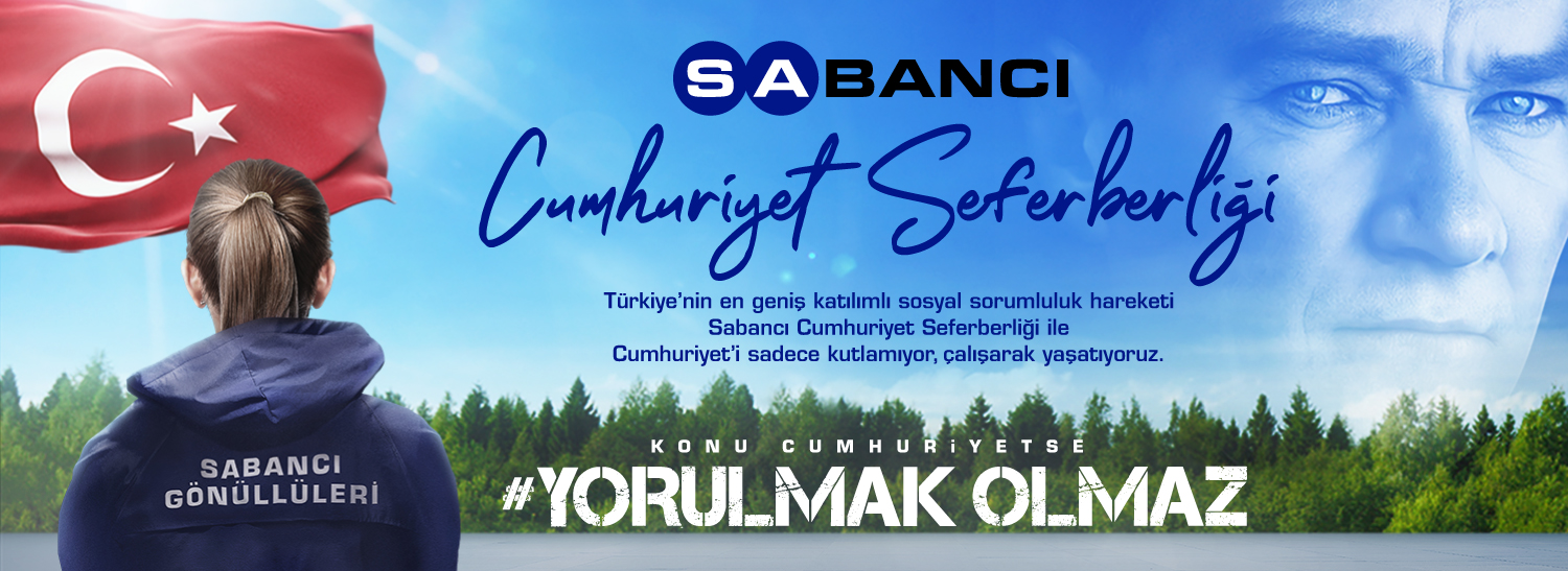 Merhum Hacı Ömer Sabancı’nın söylediği gibi “Bu topraklardan kazandığımızı bu toprakların insanıyla paylaşacağız” şiarıyla çıktığımız yolda cumhuriyetimizin kuruluşunun 99’uncu yıl dönümünde geçen sene başlattığımız Türkiye'nin en geniş katılımlı sosyal sorumluluk hareketi olan Cumhuriyet Seferberliğini daha da büyüterek toplam 41 ilde, 60 bin’den fazla çalışan ve paydaşımızla bu sene de Cumhuriyet’i sadece kutlamıyor, çalışarak yaşatıyoruz.